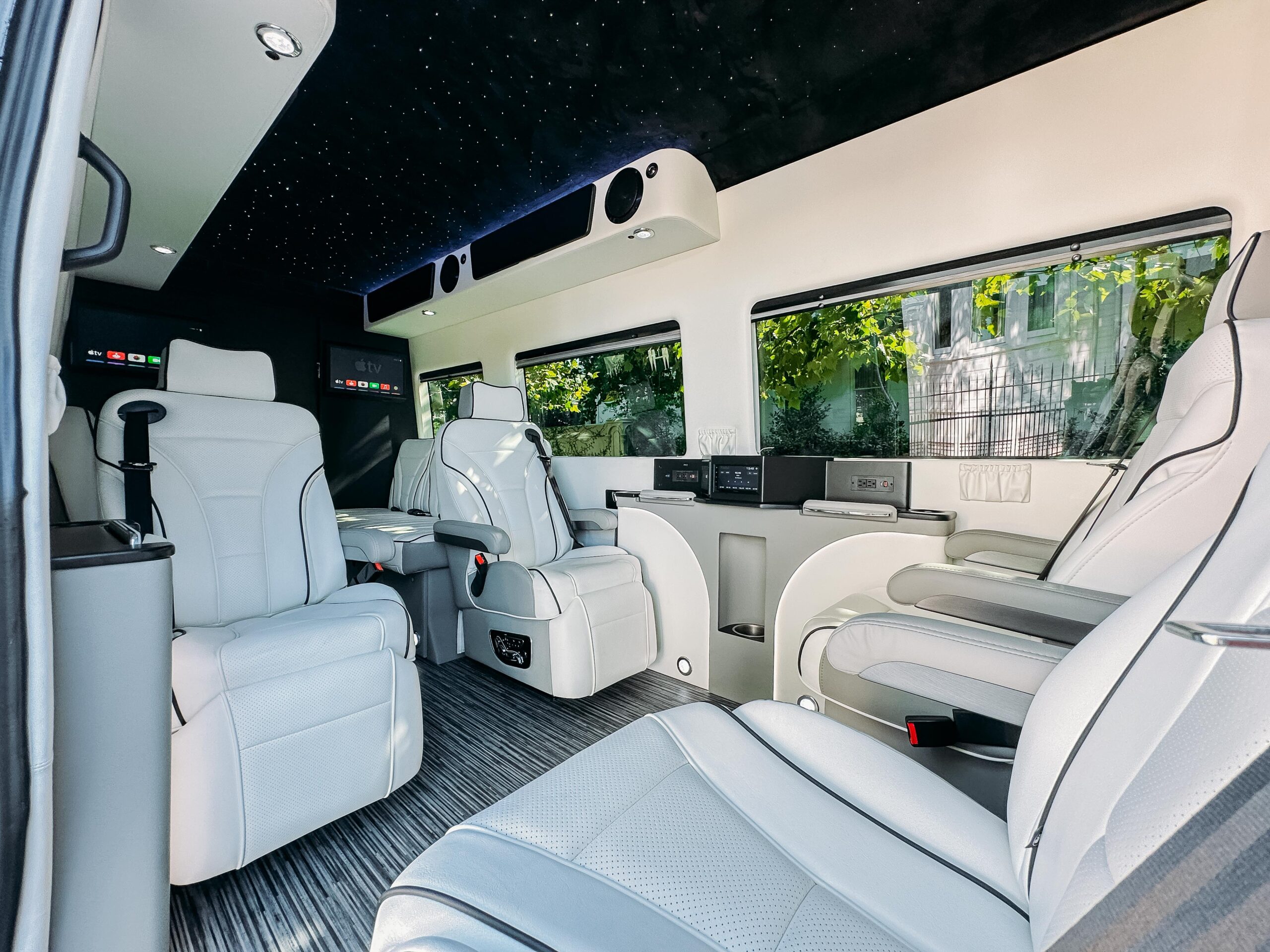 This beautiful limited edition Supreme Sprinter built by LCW Automotive is everything you have always wanted. Luxurious orthopedic captain seats keep you snug and comfortable on long trips; this particular model will seat up to 10 passengers. Luxury stylings are everywhere you look starting with pin dot ceiling, vinyl covered walls, and accents wrapped in real authentic wood. Dual independent air conditioning systems make sure you have all the amenities of home. All of this supported by Smart TV’s, Apple TV & digital master cabin control will truly make you feel like you are flying above the clouds. Check out why LCW Automotive has been an industry leader for over 45 years and experience luxury like you never have before.