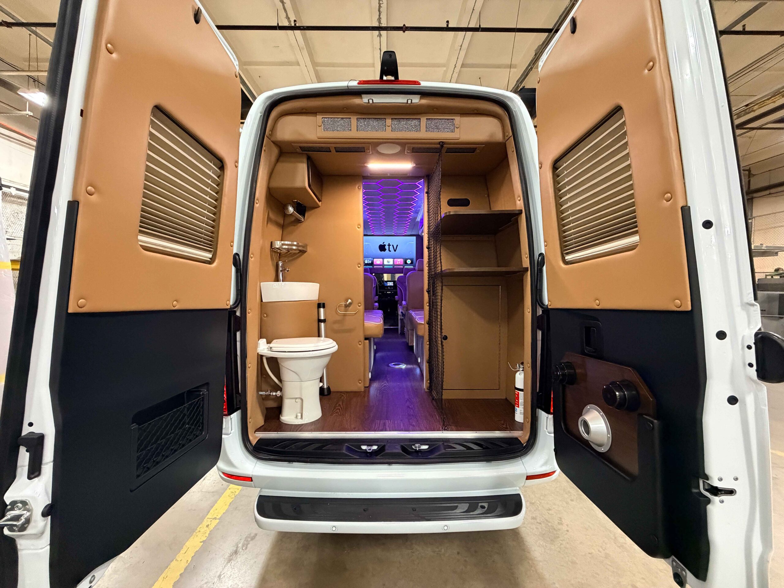 This beautiful limited edition Supreme Sprinter built by LCW Automotive is everything you have always wanted. Luxurious orthopedic captain seats keep you snug and comfortable on long trips; this particular model will seat up to 10 passengers. Luxury stylings are everywhere you look starting with pin dot ceiling, vinyl covered walls, and accents wrapped in real authentic wood. Dual independent air conditioning systems make sure you have all the amenities of home. All of this supported by Smart TV’s, Apple TV & digital master cabin control will truly make you feel like you are flying above the clouds. Check out why LCW Automotive has been an industry leader for over 45 years and experience luxury like you never have before.