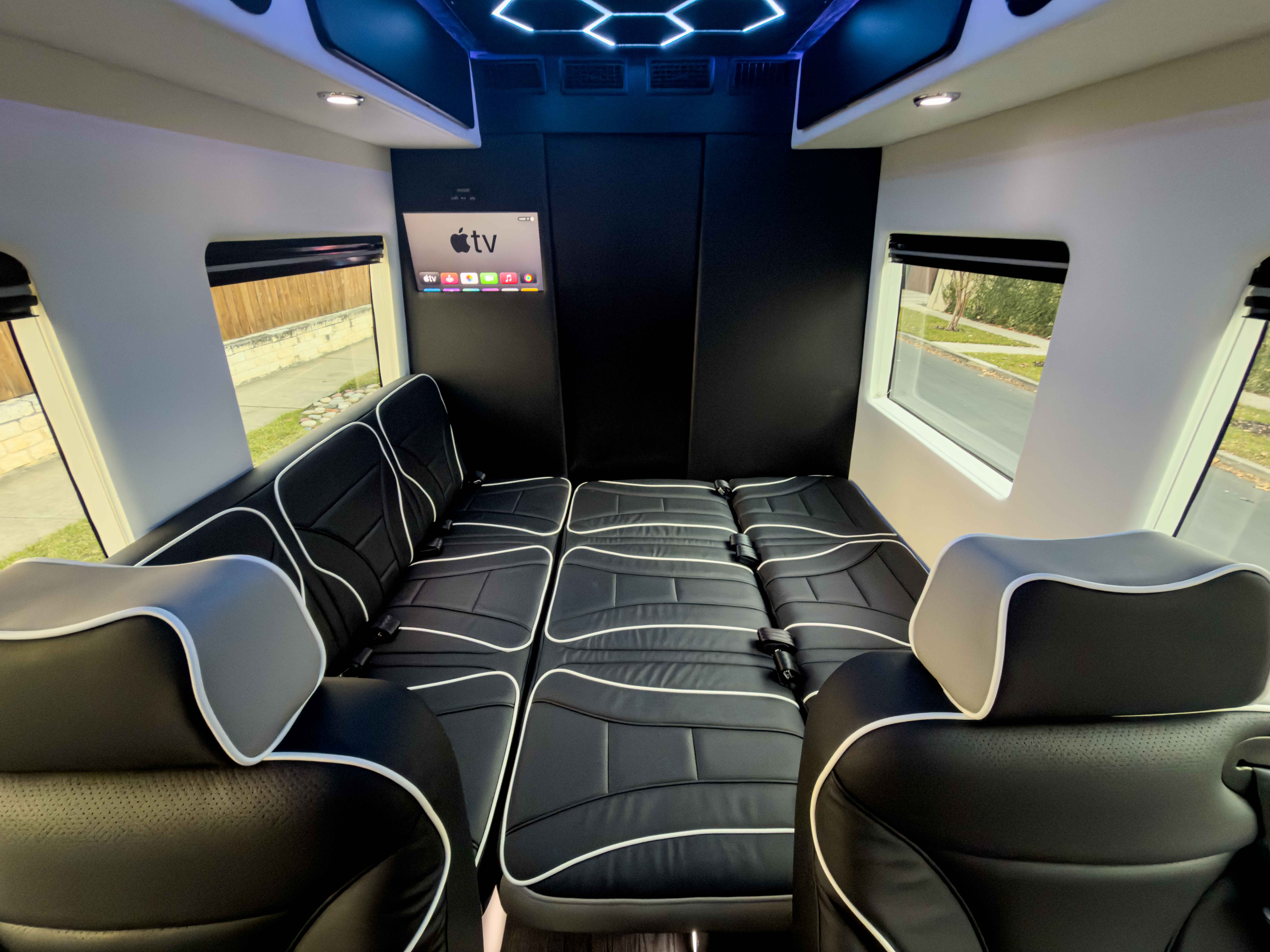 (4) Captain seats in matching OEM vinyl with 3-point seat belts (rear-facing seats include child hooks)
