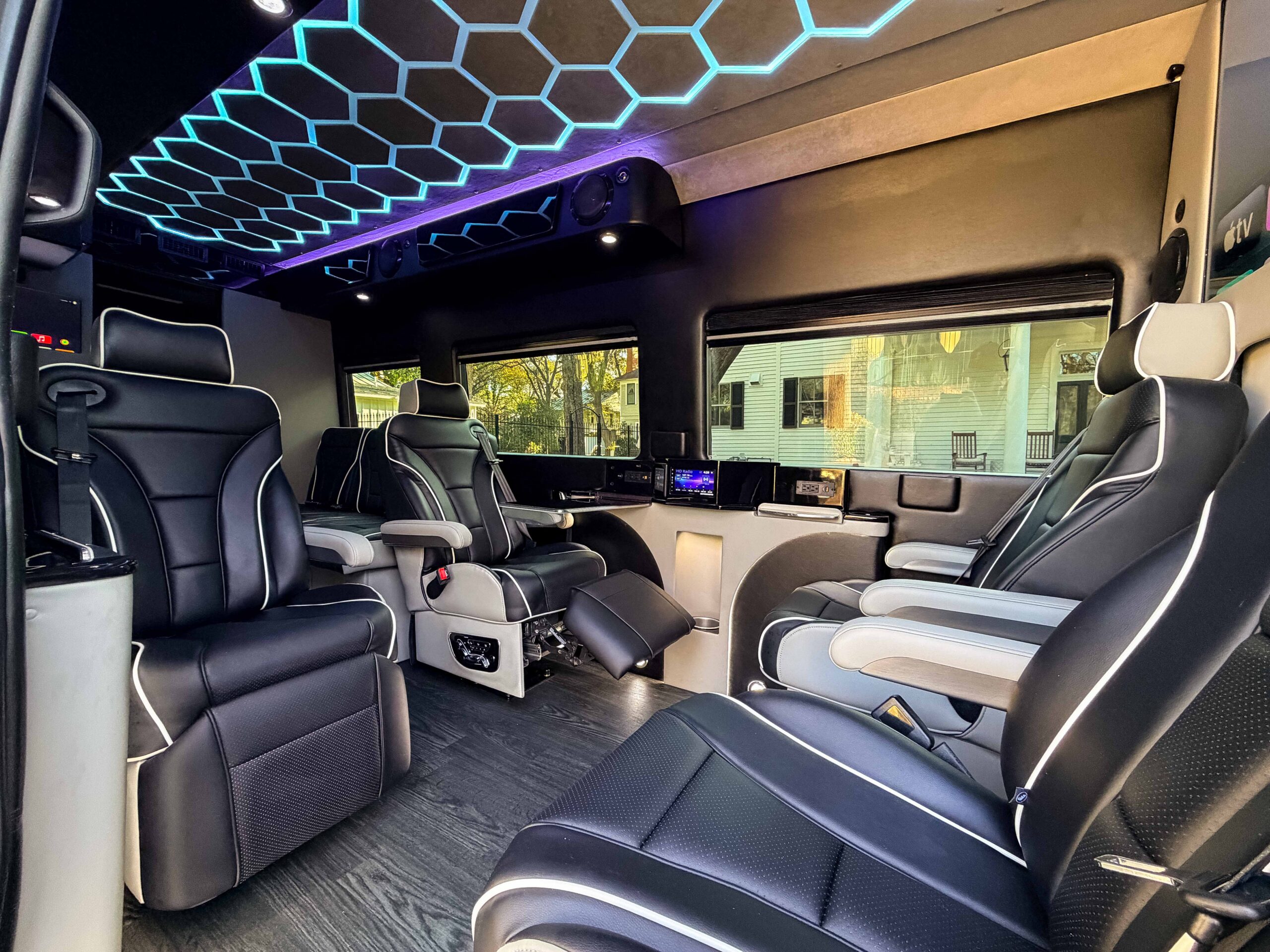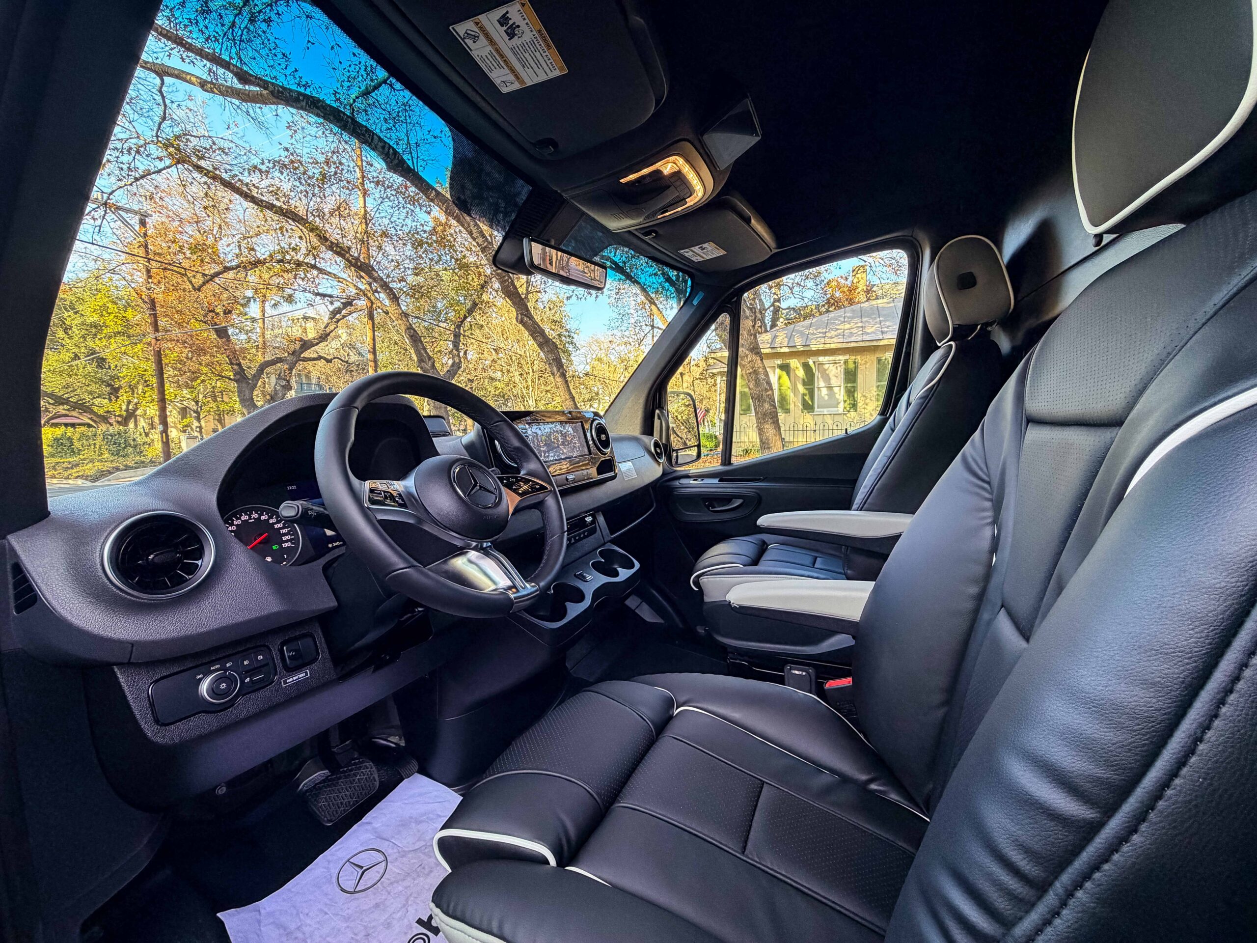 (4) Captain seats in matching OEM vinyl with 3-point seat belts (rear-facing seats include child hooks)